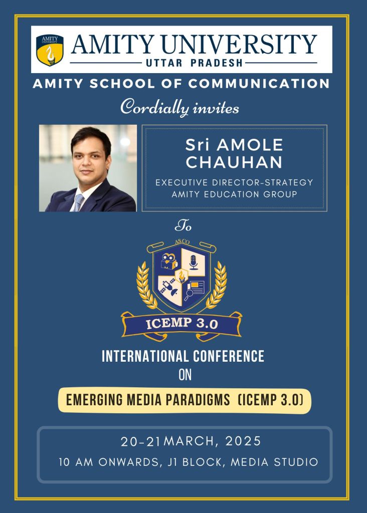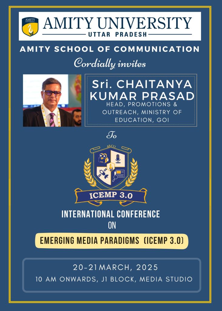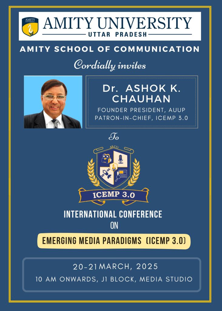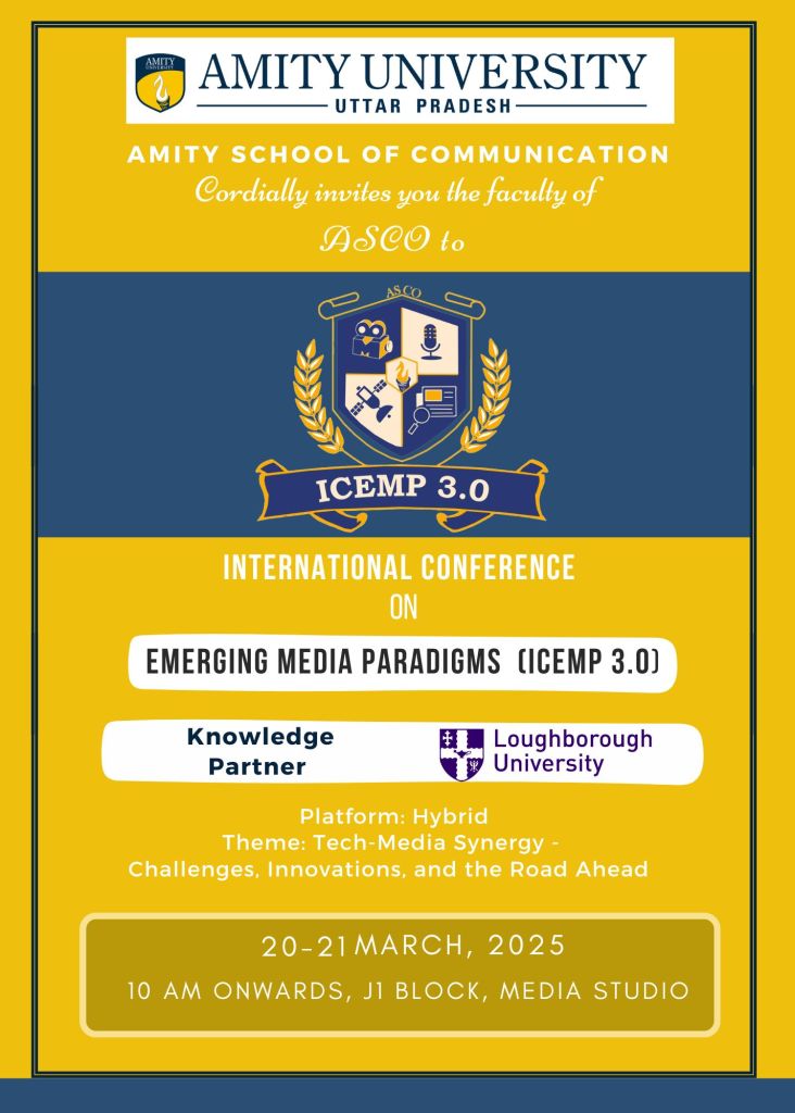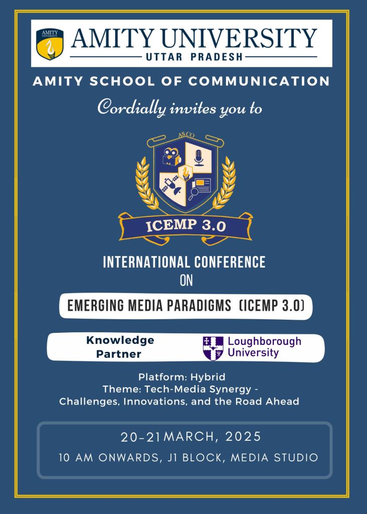 ICEMP 3.0 (International Conference on Emerging Media Paradigms) is an academic conference exploring the intersection of media, technology, and communication.