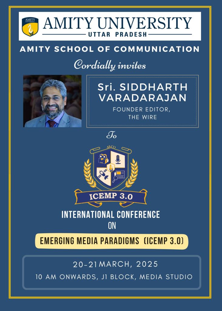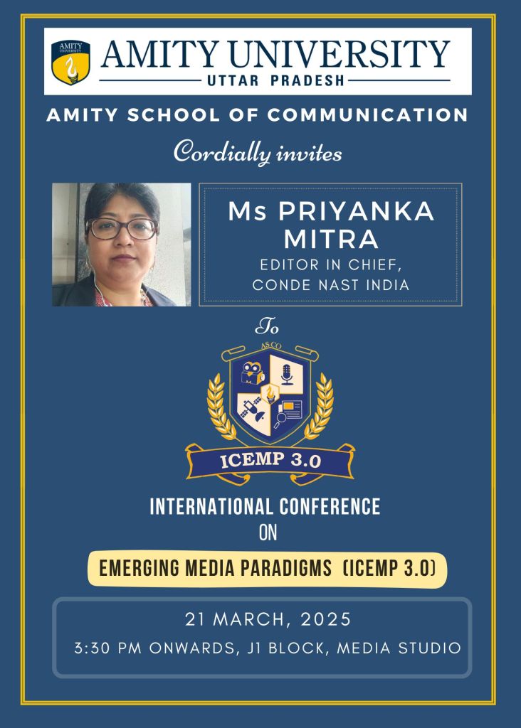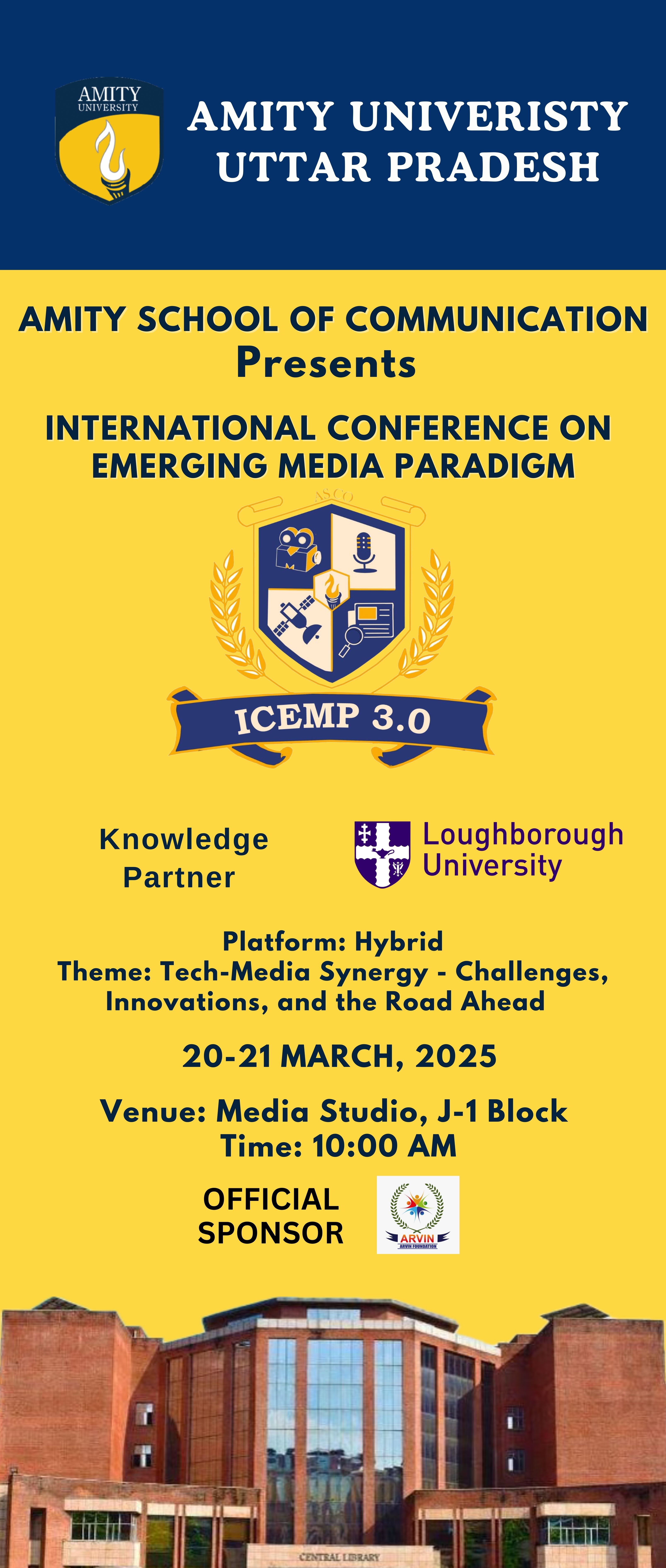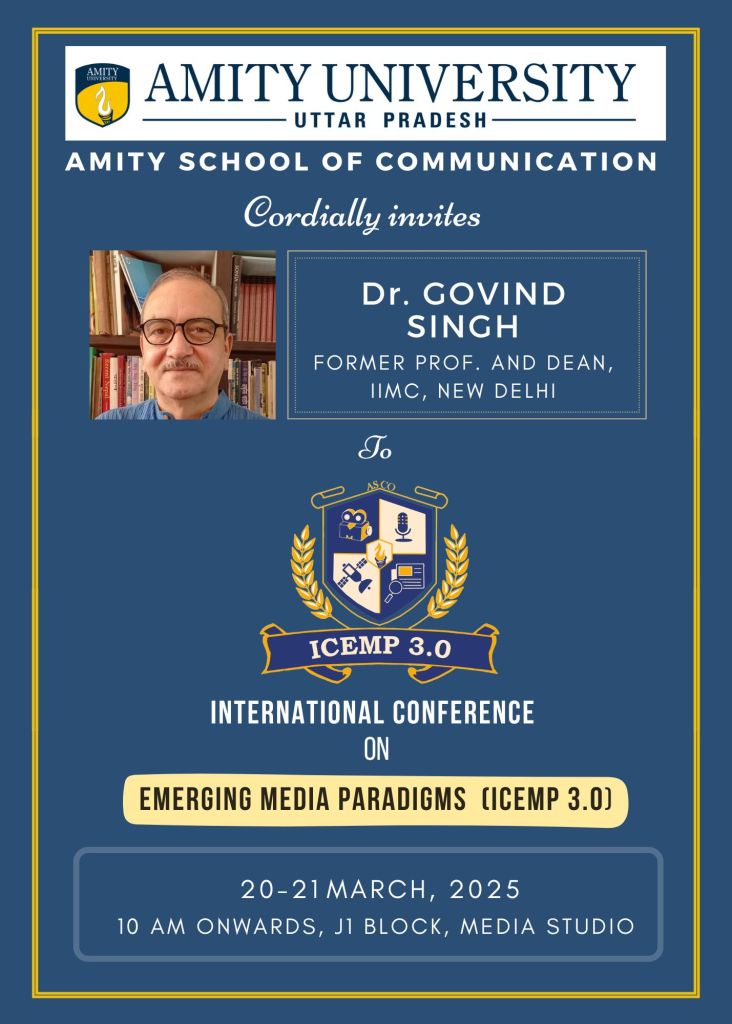 ICEMP 3.0 (International Conference on Emerging Media Paradigms) is an academic conference exploring the intersection of media, technology, and communication.