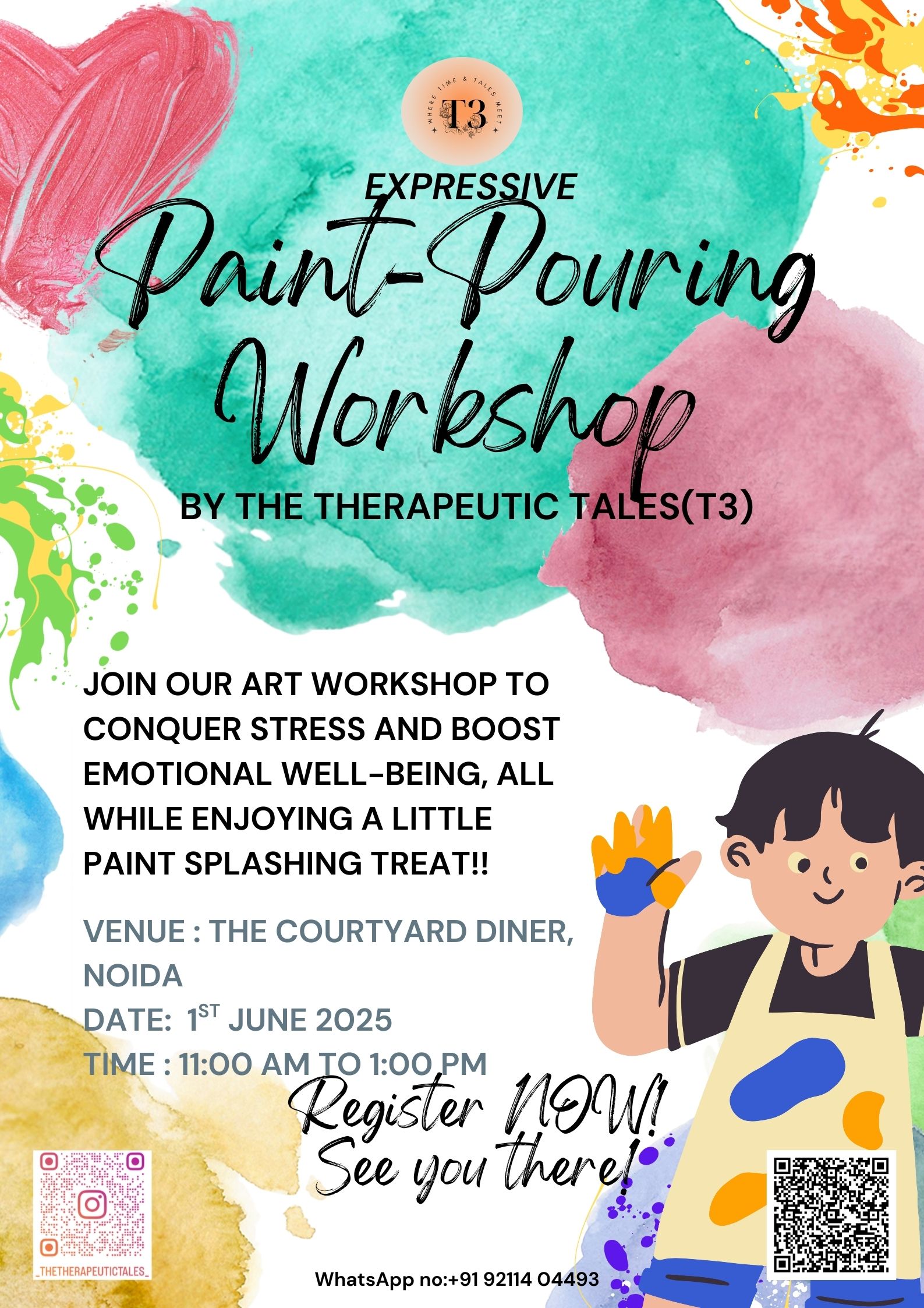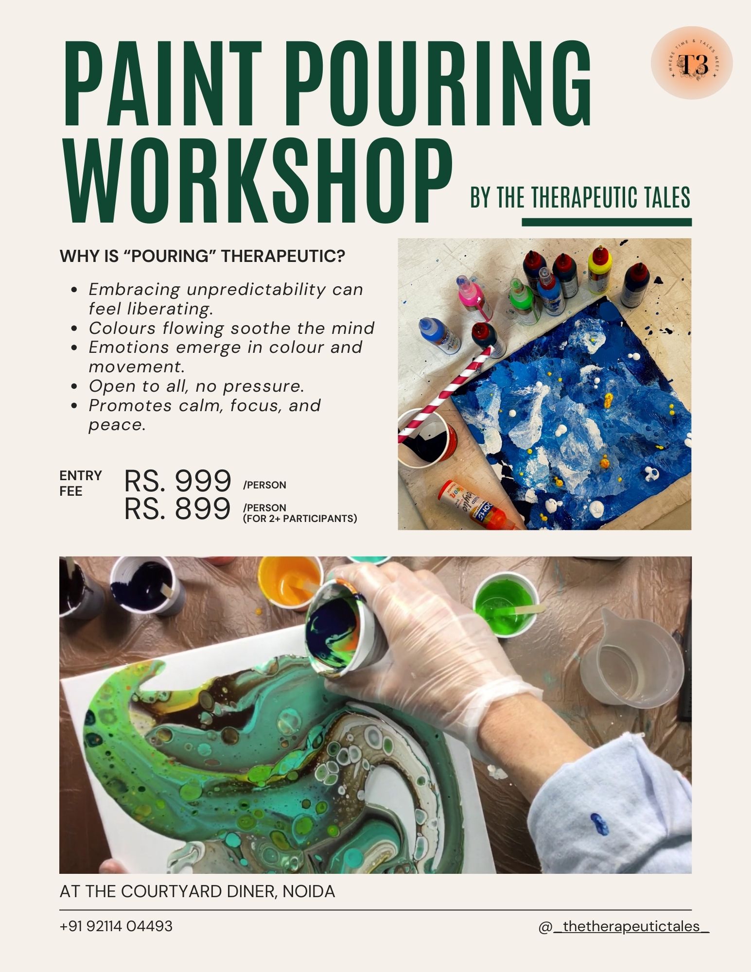 Here is a brochure designed for a paint pouring workshop by T3: The Therapeutic Tales.