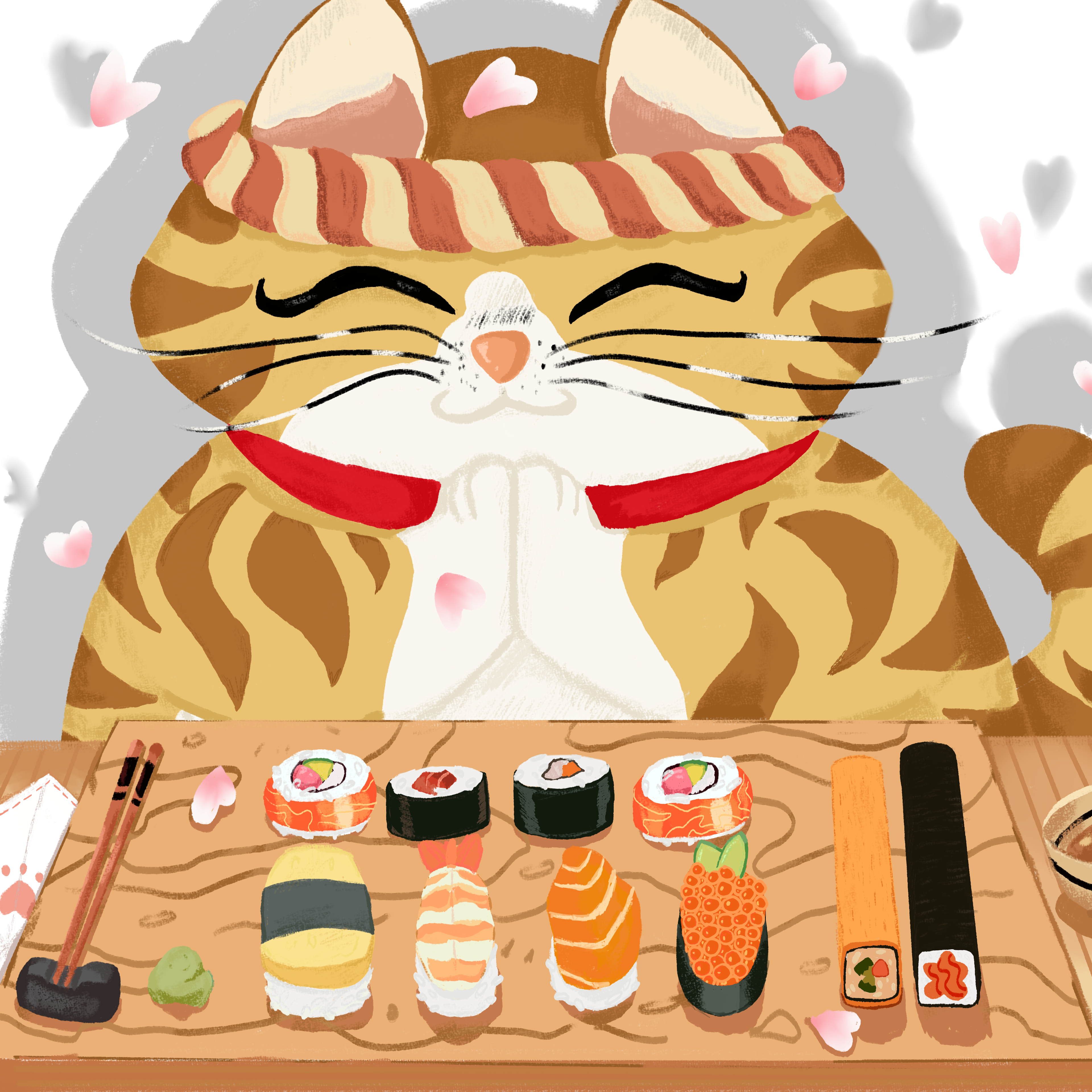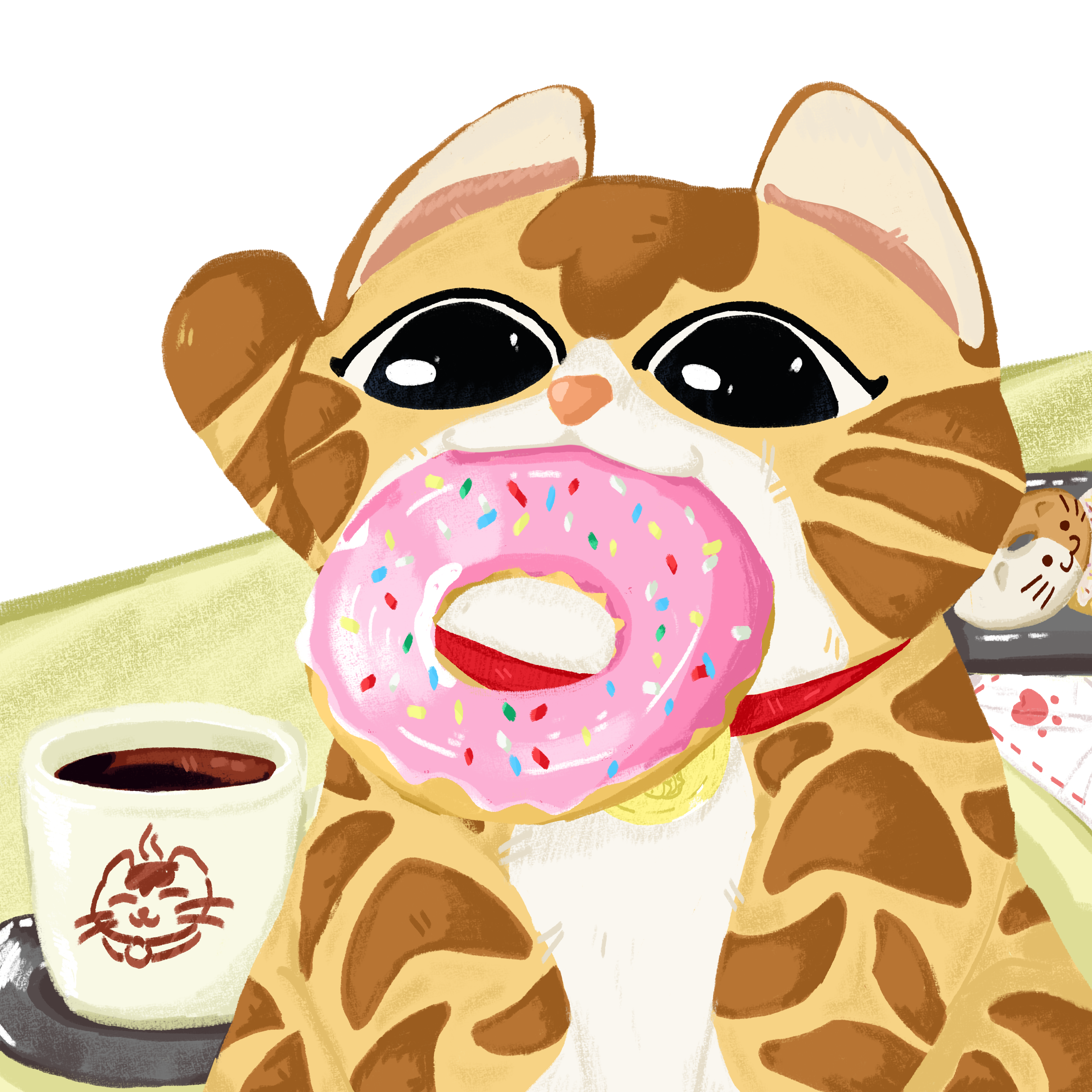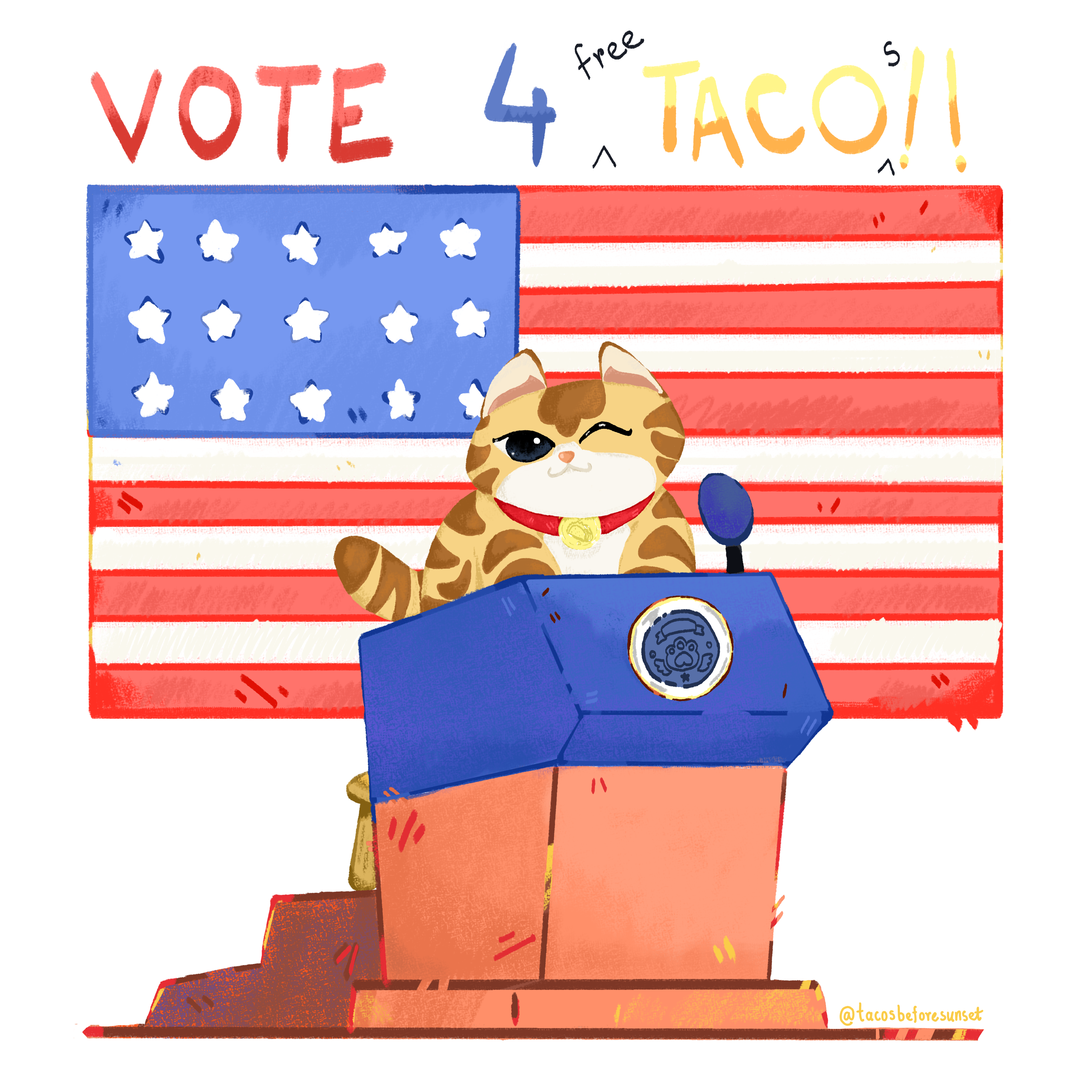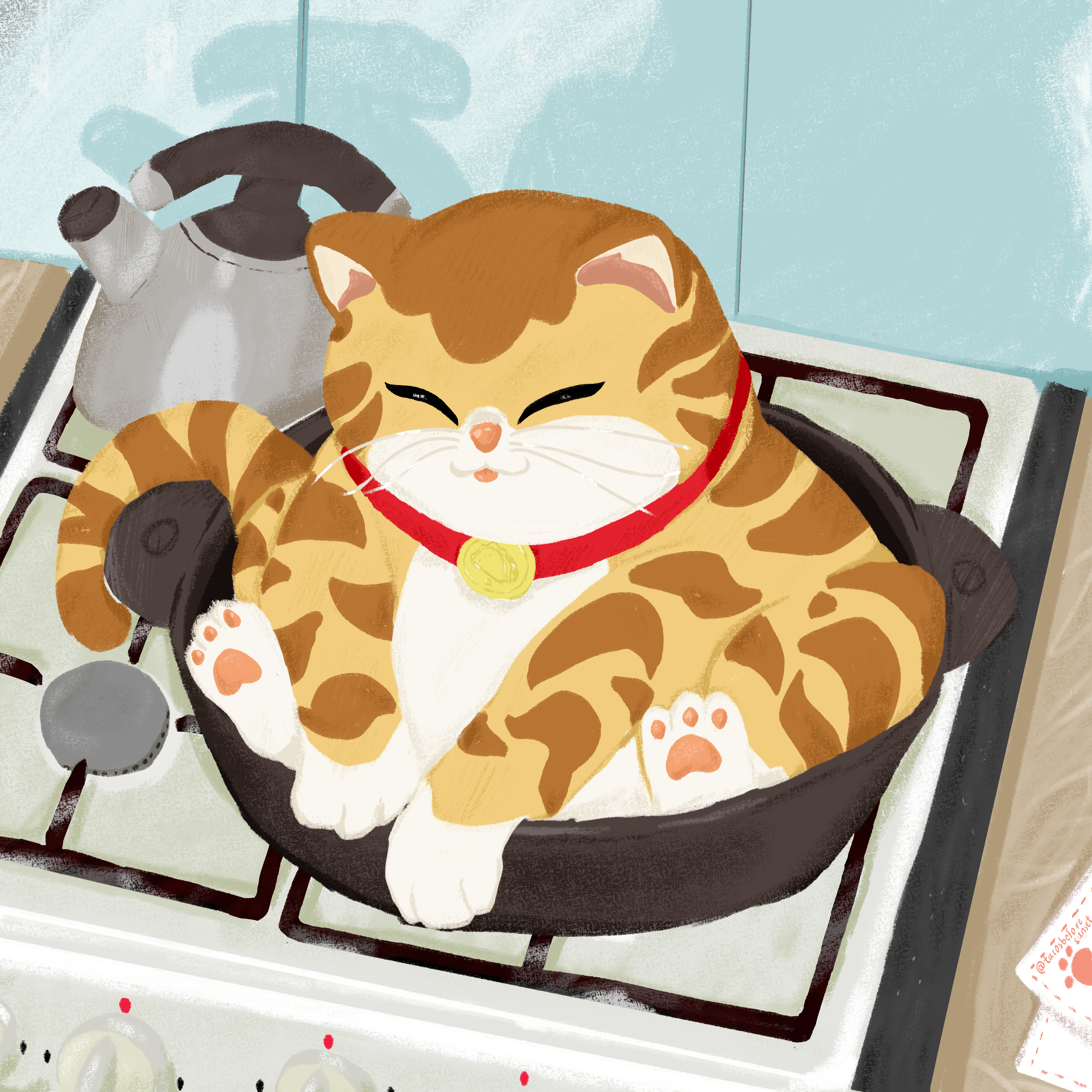 Tacos Before Sunset is a playful illustration series featuring a cat enjoying different foods.