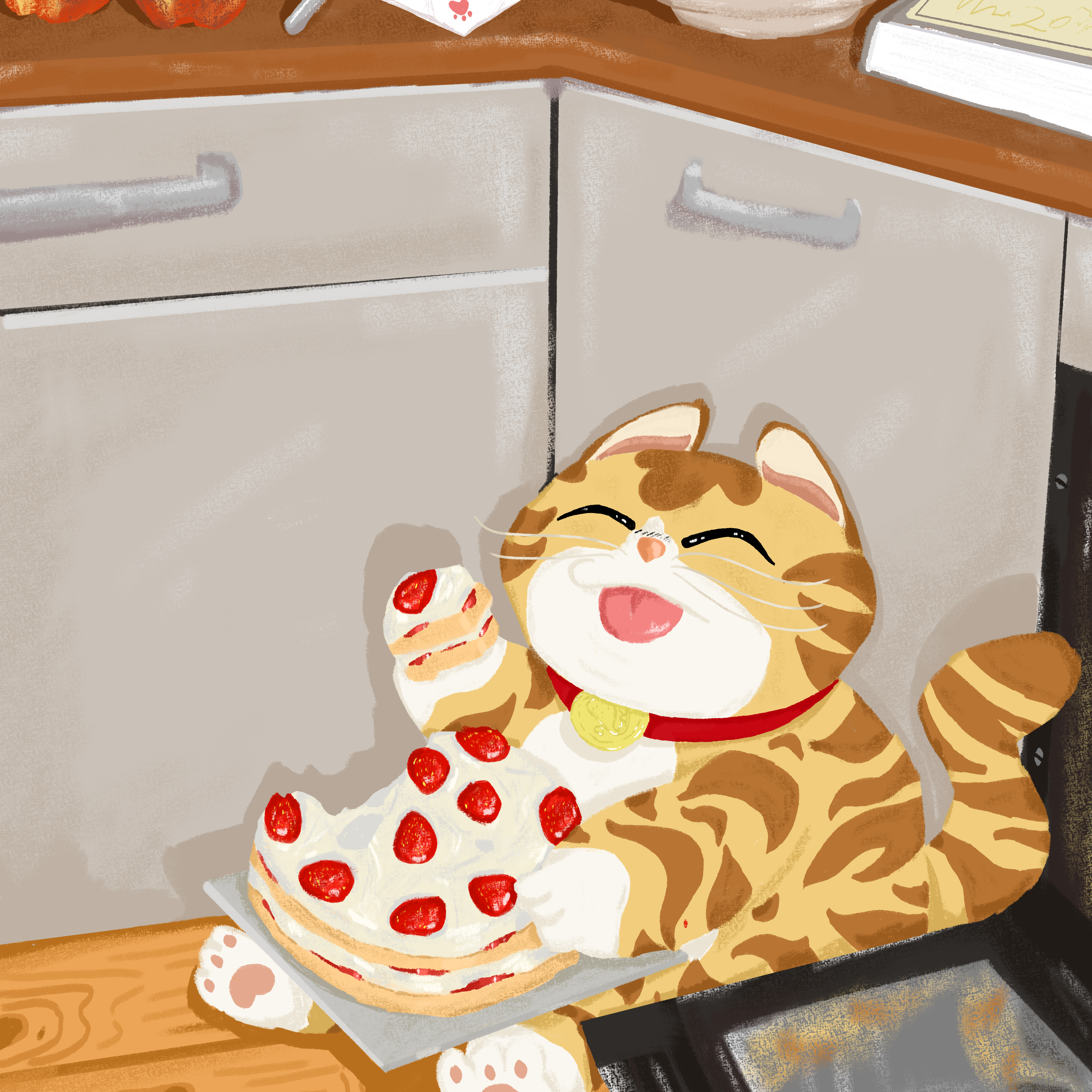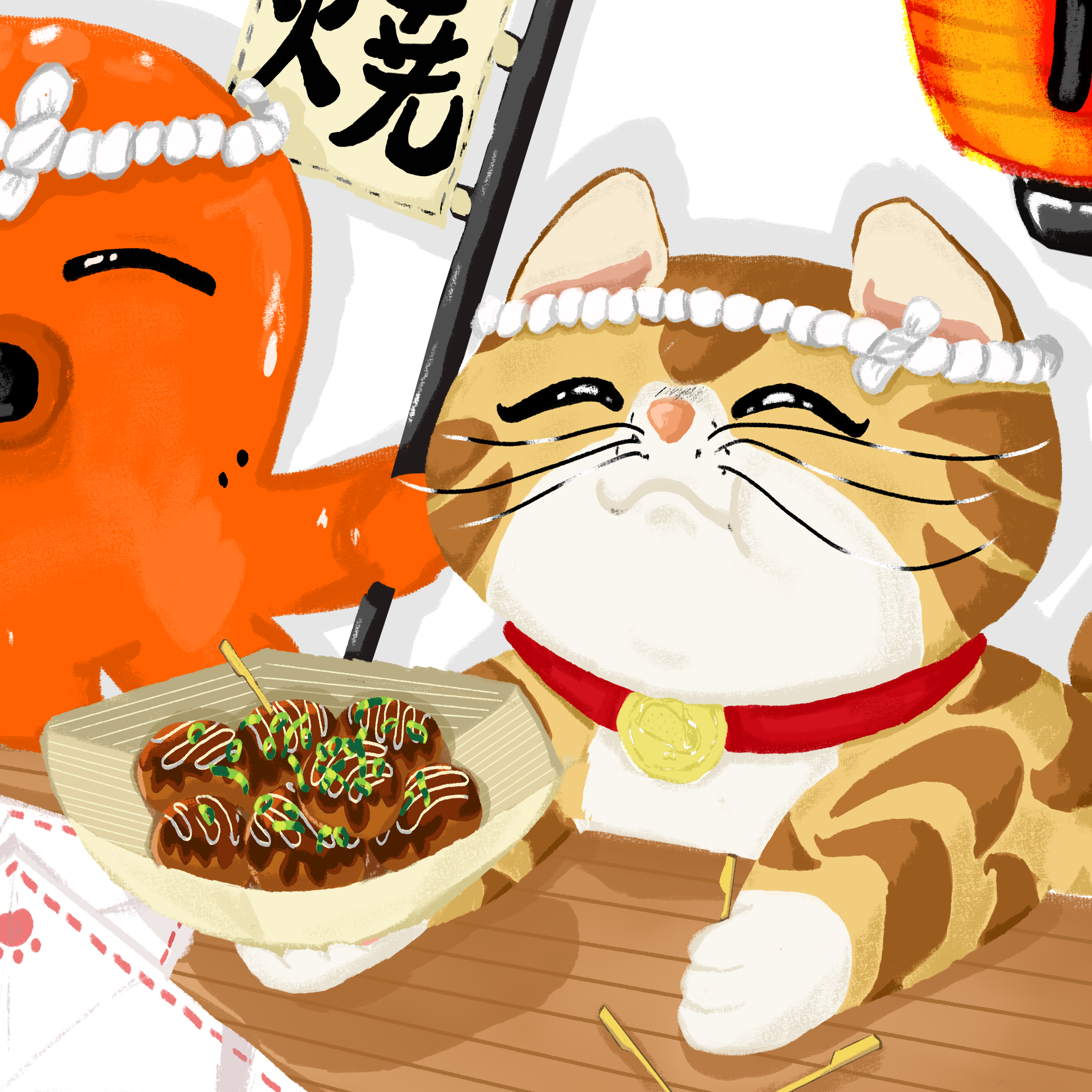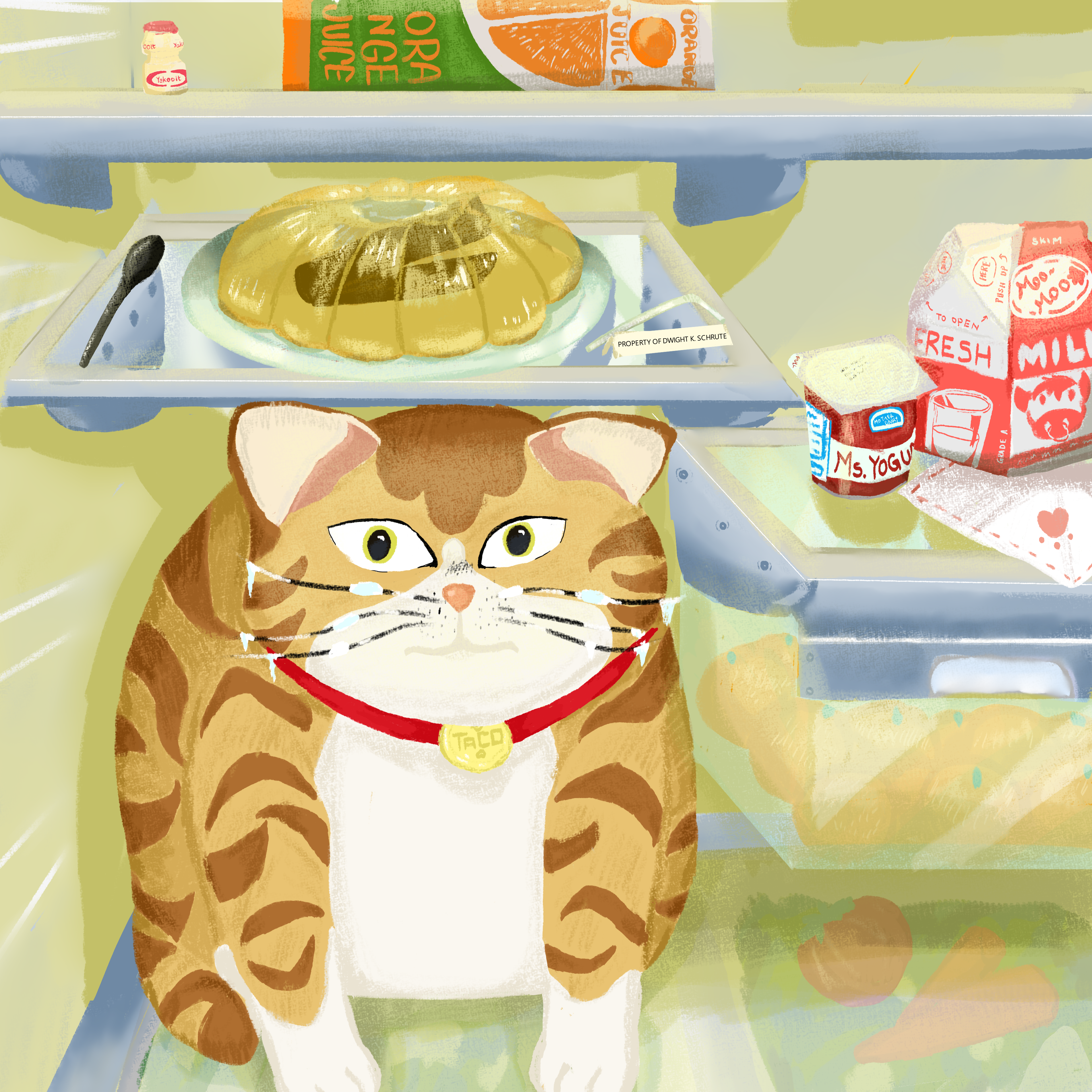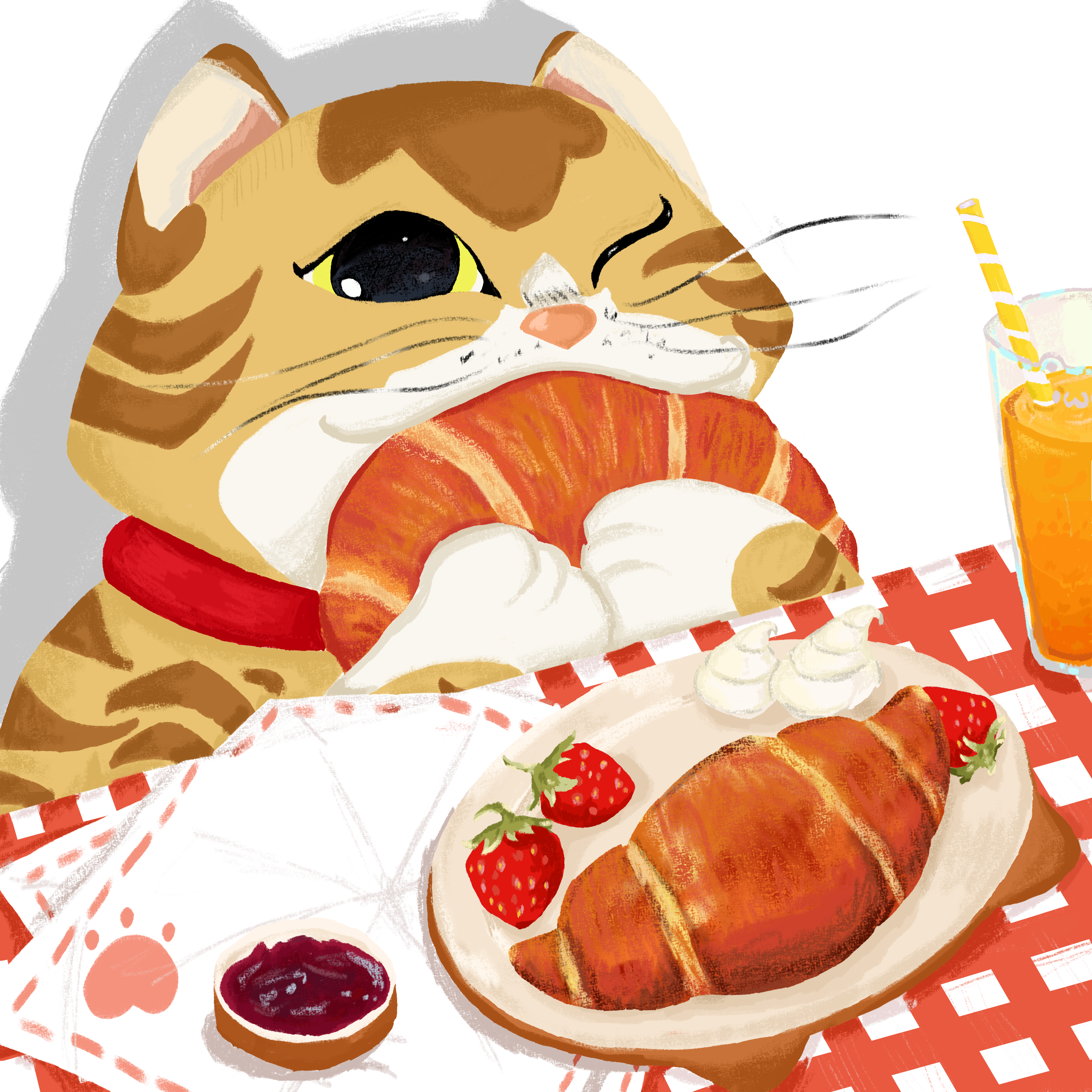 Tacos Before Sunset is a playful illustration series featuring a cat enjoying different foods.